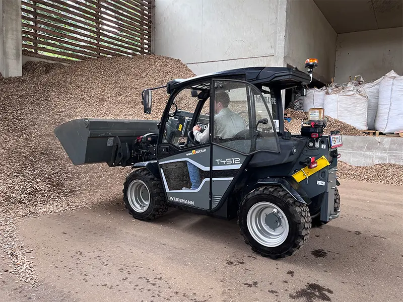 Seit März 2024 ist die Waldaffe GmbH in Ebenthal bei Klagenfurt im Bereich Biomasseveredelung tätig – ein noch junges Unternehmen mit einem klaren Fokus: kleine Heizwerke und Hotelanlagen mit hochwertigem Brennmaterial zu versorgen. Für den täglichen Umschlag, das Palettenhandling und die Arbeit als Platzwart braucht es dabei eine Maschine, die kraftvoll, kompakt und flexibel einsetzbar ist. Die Wahl fiel auf den Weidemann T4512 – ein Gerät, das bereits nach kurzer Zeit nicht mehr wegzudenken ist.